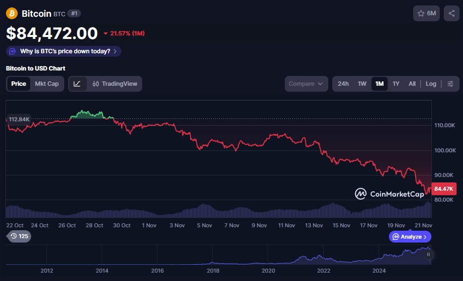 Bitcoin cayó más de 20% desde su máximo reciente y eso, técnicamente, marca un “bear market”.