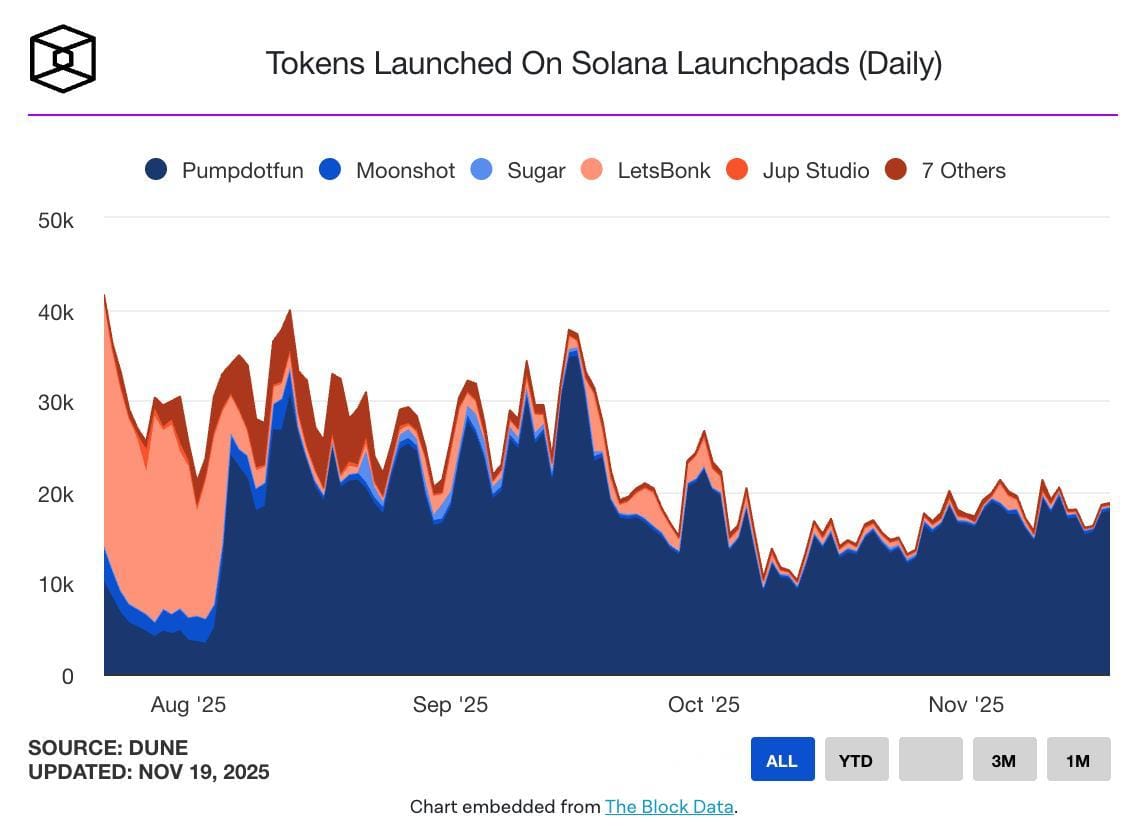 Desde la activación de “Mayhem Mode” en Pumpdotfun, los lanzamientos diarios de tokens en Solana pasaron de un promedio de 17,300 a 17,800, mostrando un efecto casi nulo en la actividad general.