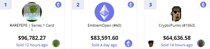 💎 ETH lidera el volumen de trading de NFTs con $3.3M en un día. Solana lo sigue de cerca con $2.1M, y luego BTC con $1.4M.