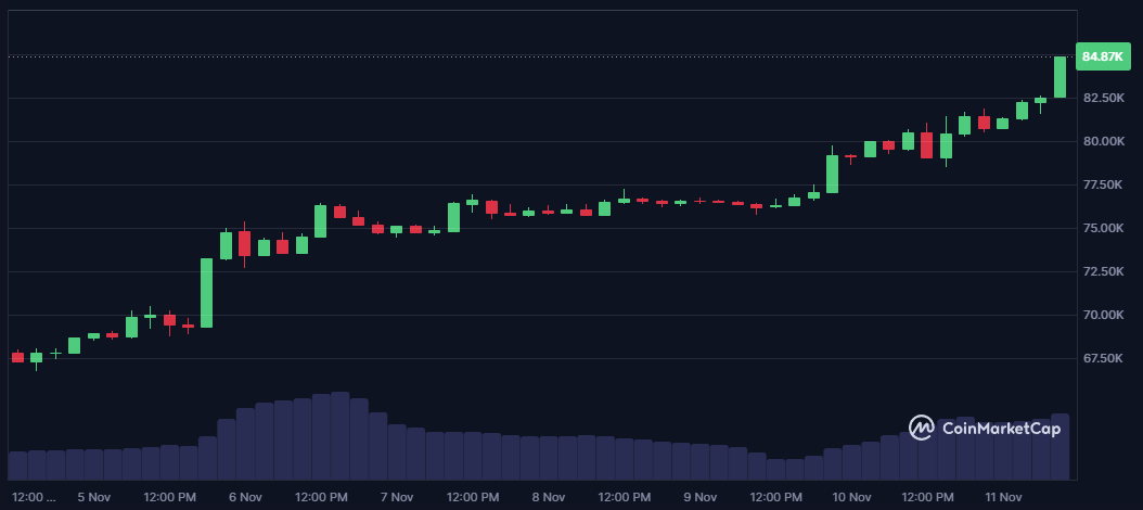 ¡Increíble, pero cierto! Bitcoin ha llegado a un nuevo máximo de $84,749. Sí, lo leíste bien: ¡$84,800 por un solo Bitcoin! Este ascenso épico está revolucionando el mercado.