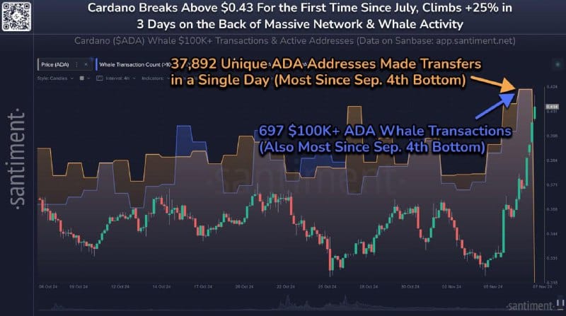 🚀 Cardano está causando sensación al subir más del 25% en los últimos tres días, lo que podría atraer el interés del público minorista. Este crecimiento ha sido esperado con ansias por la comunidad de ADA tras una larga espera.