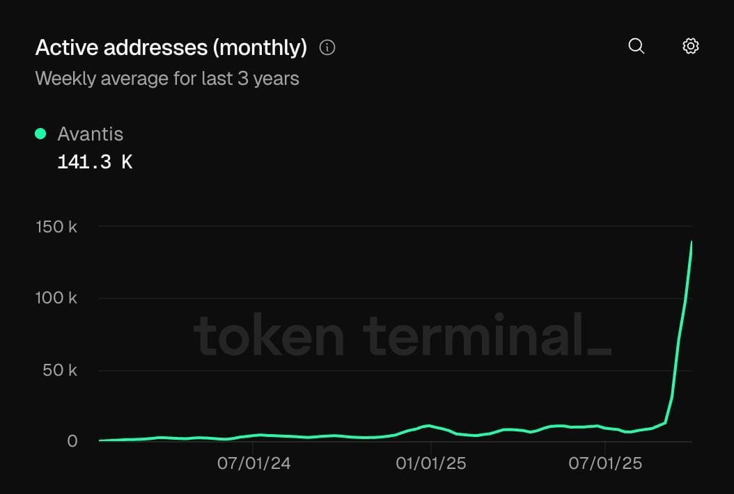 Avantis alcanzó 141 mil direcciones activas mensuales, un crecimiento de 10× en 30 días. Su propuesta: derivados perpetuos de activos tradicionales y cripto, con estructura de comisiones inversa y fuerte enfoque en incentivos.