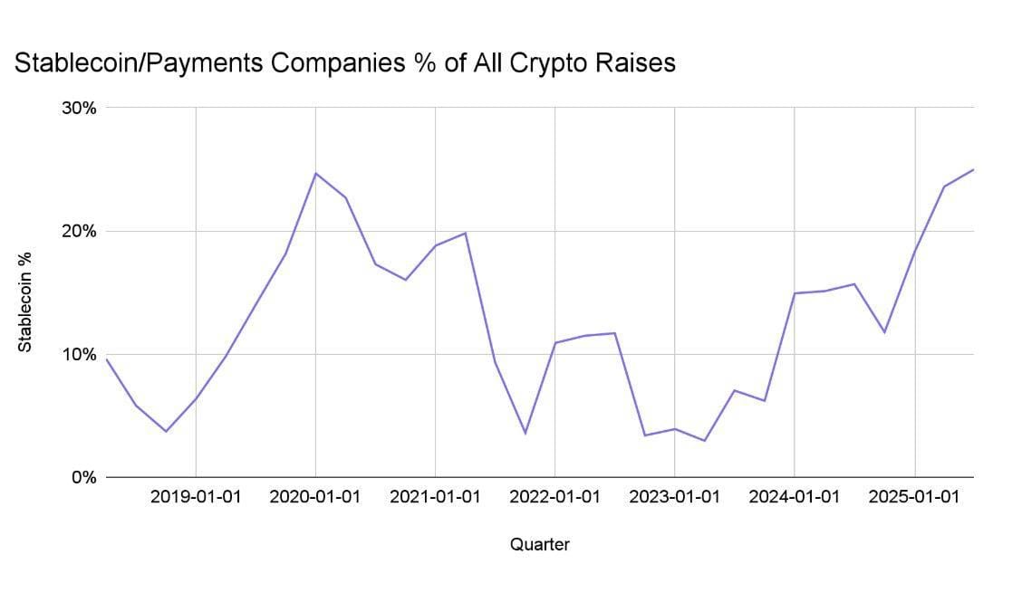 En el Q3, las empresas de stablecoins y pagos captaron cerca del 25% de todo el fundraising en cripto, el nivel más alto registrado para la categoría.