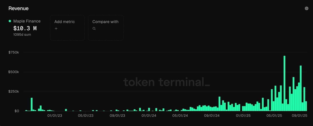 📌 Maple está demostrando que el crédito descentralizado puede generar flujos de caja consistentes. En un mercado donde gran parte del “yield” proviene de emisiones de tokens, su desempeño ofrece una narrativa distinta: la de un protocolo que se acerca al perfil de una fintech tradicional, pero sobre rails cripto.