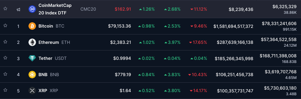 ETH $2,310, -20%.