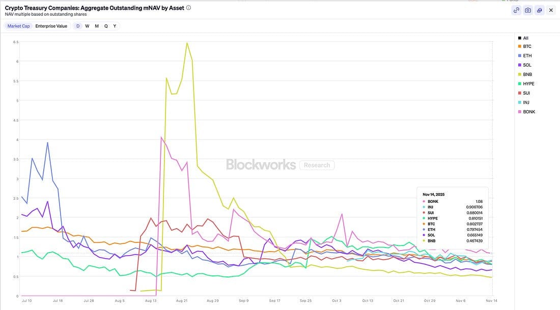 Lo más interesante aquí es algo técnico que se llama mNAV (valor neto ajustado al mercado). Básicamente, cuando una acción de estas empresas vale menos que las criptomonedas que tienen guardadas, significa que el mercado ya no les está dando ningún premio por acumular cripto como antes lo hacía.
