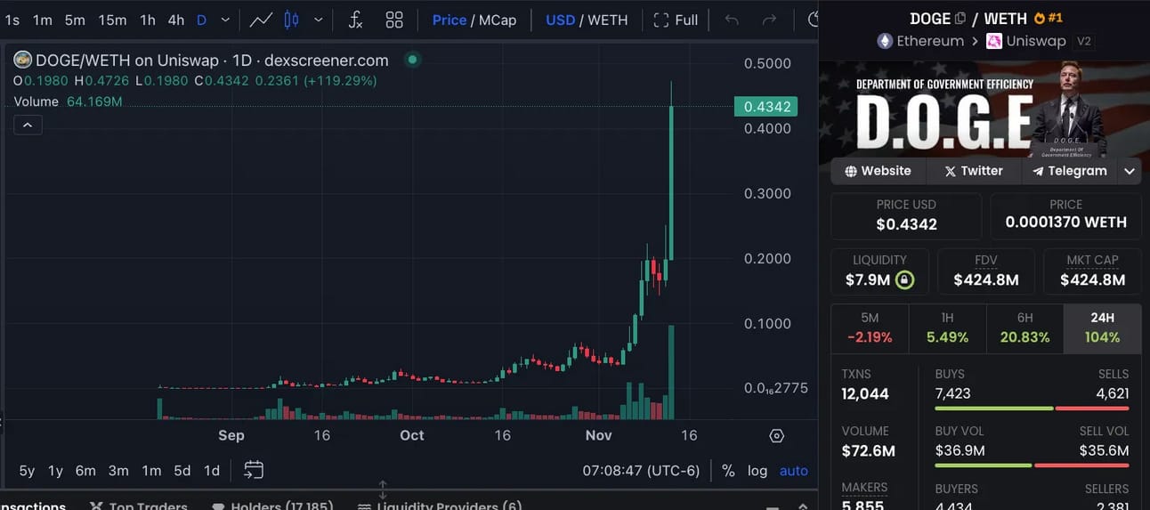 La tendencia es clara: cualquier evento importante o noticia ahora se convierte en memes y se tokeniza. Estos memes de DOGE relacionados con el nuevo departamento solo tienen unos meses de antigüedad (el de Solana tiene menos de dos semanas).