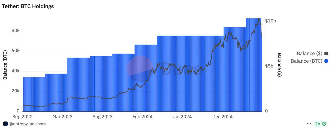 Tether redujo sus reservas de Bitcoin de 92,600 a 78,000 BTC, lo que representa una salida de aproximadamente $1.6 mil millones. Este es uno de los movimientos más significativos desde sus adquisiciones sistemáticas iniciadas en el 2023.