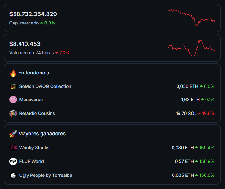 🌿 Los NFTs de Solana también subieron: Mad Lads +10% a 58 SOL, SMB Gen 2 +3% a 22, DeGods +46% a 18.