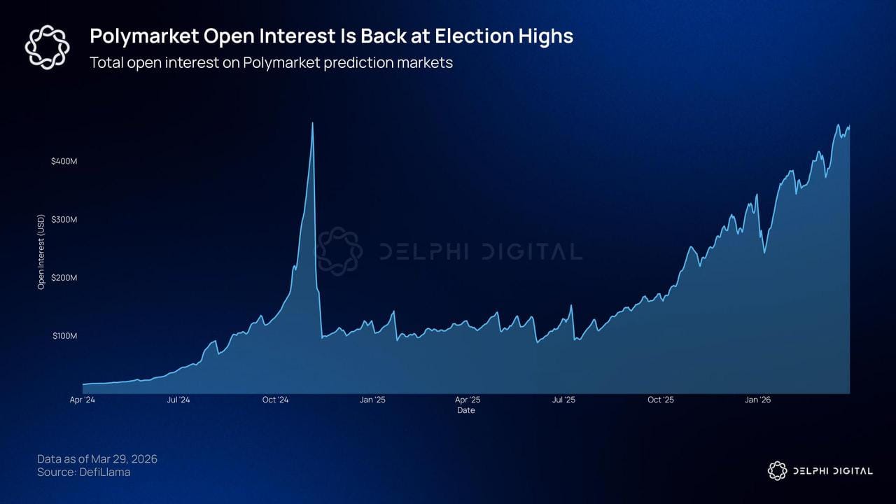 El open interest de Polymarket volvió a niveles cercanos a sus máximos, pero ahora el capital está distribuido entre múltiples categorías como deportes, política, macro y crypto, en lugar de concentrarse en un solo evento.