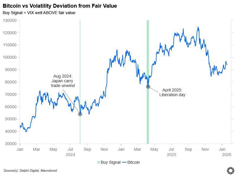 La volatilidad implícita de Bitcoin vuelve a cotizar por debajo de su valor justo, una señal que en el pasado ha anticipado caídas. Este patrón ya se vio antes de la liquidación masiva de octubre 2024, y los indicadores actuales sugieren que podríamos ver un repunte en la volatilidad.