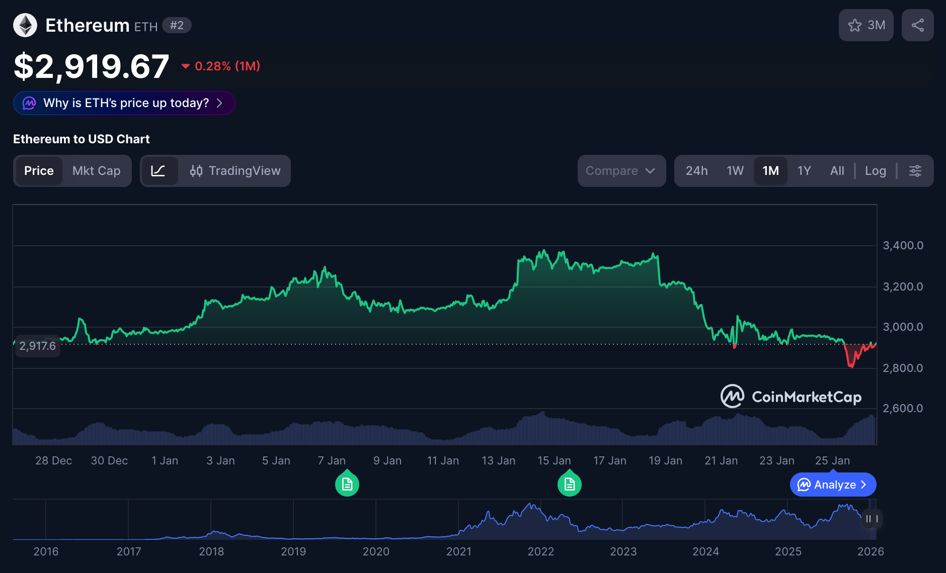 ETH $2,914, -1.3%.