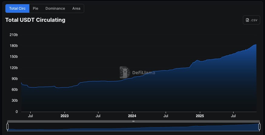 Otro dato interesante, la cantidad de USDT circulando ahora supera los 122 mil millones de tokens. De esos, casi el 70% están en la red Tron y alrededor del 18% en Ethereum.