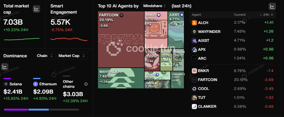VIRTUAL (+9%), FARTCOIN (+5%), ai16z (+9%), ACT (+1%), y FAI (+1%)