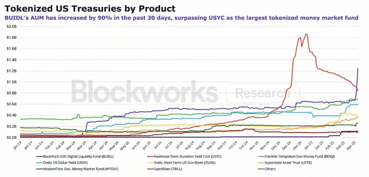 BUIDL lidera con $1.2B en AUM.