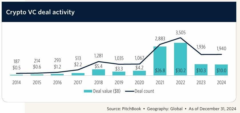 La actividad de venture capital en criptomonedas se desplomó en el Q4 2024.